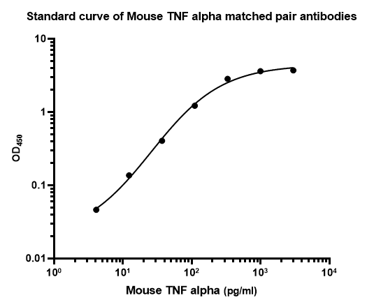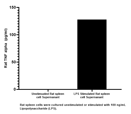 Tumor necrosis factor alpha (TNF-alpha ), also known as cachectin and TNFSF1A, is the prototypic ligand of the TNF superfamily. It is a pleiotropic molecule that plays a central role in inflammation, immune system development, apoptosis, and lipid metabolism. TNF-alpha is also involved in a number of pathological conditions including asthma, Crohn's disease, rheumatoid arthritis, neuropathic pain, obesity, type 2 diabetes, septic shock, autoimmunity, and cancer. Mouse TNF-alpha is synthesized as a 26 kDa type II transmembrane protein that consists of a 35 amino acid (aa) cytoplasmic domain, a 21 aa transmembrane segment, and a 179 aa extracellular domain (ECD). Within the ECD, mouse TNF-alpha shares 95% aa identity with rat, and 80% aa identity with canine, equine, feline, human, rabbit, and porcine TNF-alpha. It is produced by a wide variety of immune, epithelial, endothelial, and tumor cells. TNF-alpha is assembled intracellularly to form a noncovalently linked homotrimer which is expressed on the cell surface. Cell surface TNF-alpha can both induce the lysis of tumor cells and virus infected cells, and generate its own downstream cell signaling following ligation by soluble TNF RI. Shedding of membrane bound TNF-alpha by TACE/ADAM17 releases the bioactive cytokine, a 55 kDa soluble trimer containing the TNF-alpha extracellular domain. TNF-alpha binds the ubiquitous 55-60 kDa TNF RI and the hematopoietic cell-restricted 78-80 kDa TNF RII, both of which are also expressed as homotrimers. Both type I and type II receptors bind TNF-alpha with comparable affinity and can promote NFkB activation. Only TNF RI, however, contains a cytoplasmic death domain which triggers the activation of apoptosis. Soluble forms of both types of receptors are released into human serum and urine, and can neutralize the biological activity of TNF.