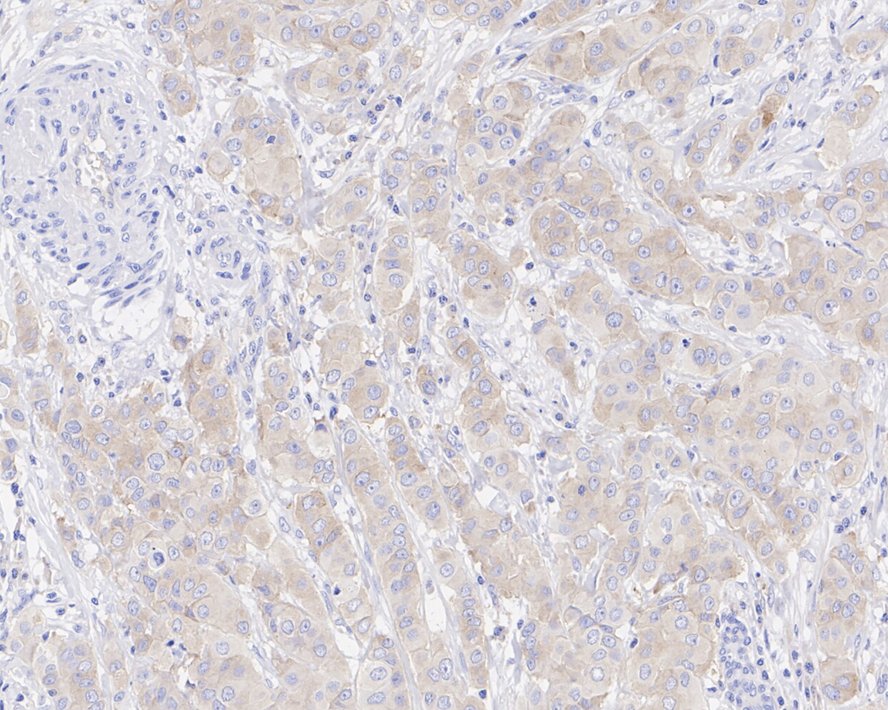 Immunohistochemical analysis of paraffin-embedded human breast cancer tissue with Rabbit anti-CAD antibody (HA722248) at 1/200 dilution.