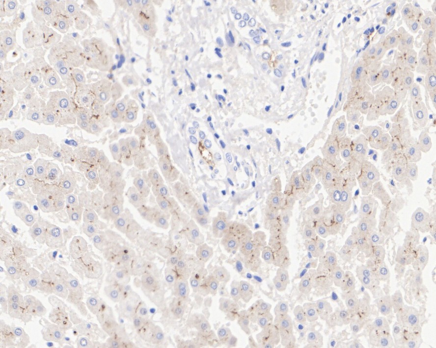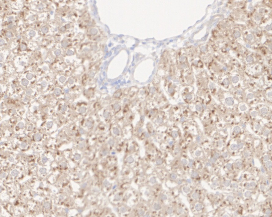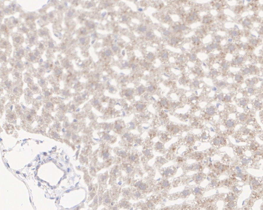 Immunohistochemical analysis of paraffin-embedded mouse liver tissue with Rabbit anti-Fetuin B antibody (HA722368) at 1/1,000 dilution.