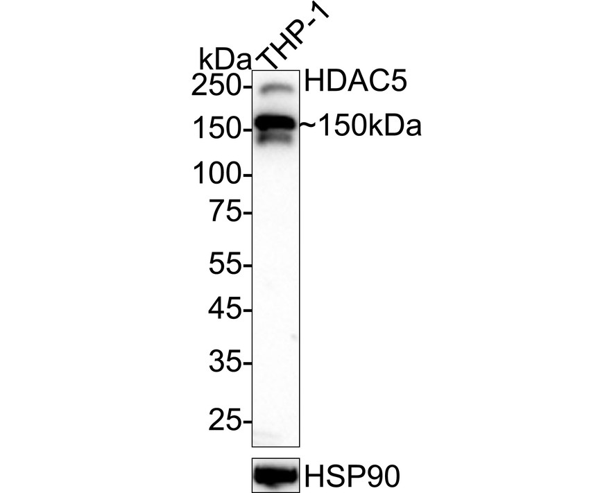 Western blot analysis of HDAC5 on THP-1 cell lysates with Rabbit anti-HDAC5 antibody (HA723022) at 1/2,000 dilution.