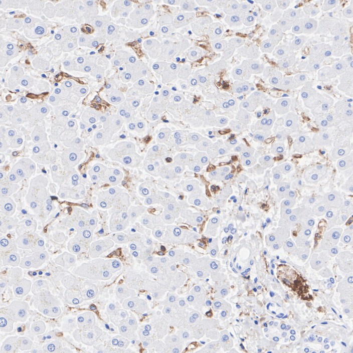 Immunohistochemical analysis of paraffin-embedded mouse liver tissue with Rabbit anti-NOX2 / gp91phox antibody (HA723224) at 1/1,000 dilution.