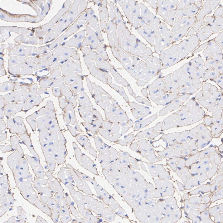 Immunohistochemical analysis of paraffin-embedded mouse heart tissue with Rabbit anti-Decorin antibody (HA723504) at 1/100 dilution.