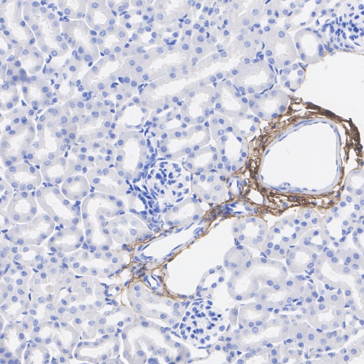 Immunohistochemical analysis of paraffin-embedded mouse kidney tissue with Rabbit anti-Decorin antibody (HA723504) at 1/100 dilution.