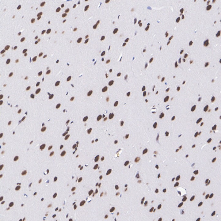 Immunohistochemical analysis of paraffin-embedded mouse brain tissue with Rabbit anti-Retinoid X Receptor beta / RXRB antibody (HA723542) at 1/1,000 dilution.