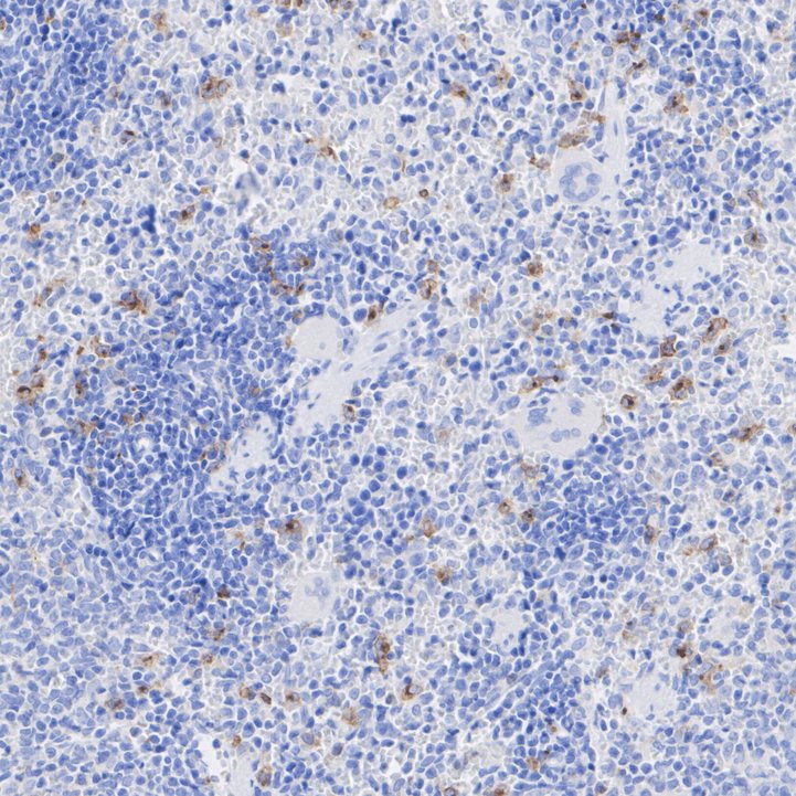 Immunohistochemical analysis of paraffin-embedded mouse spleen tissue with Rabbit anti-TIM 3 antibody (HA723854) at 1/1,000 dilution.