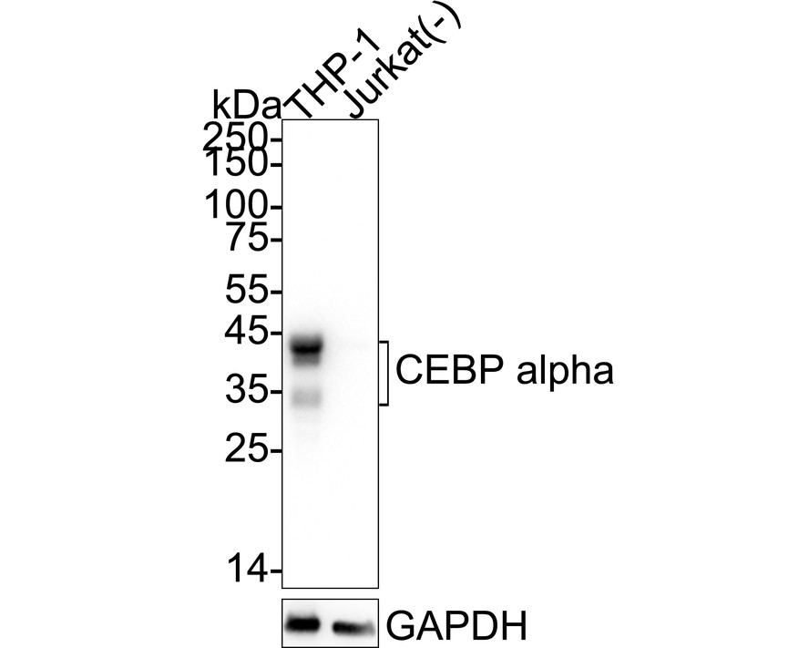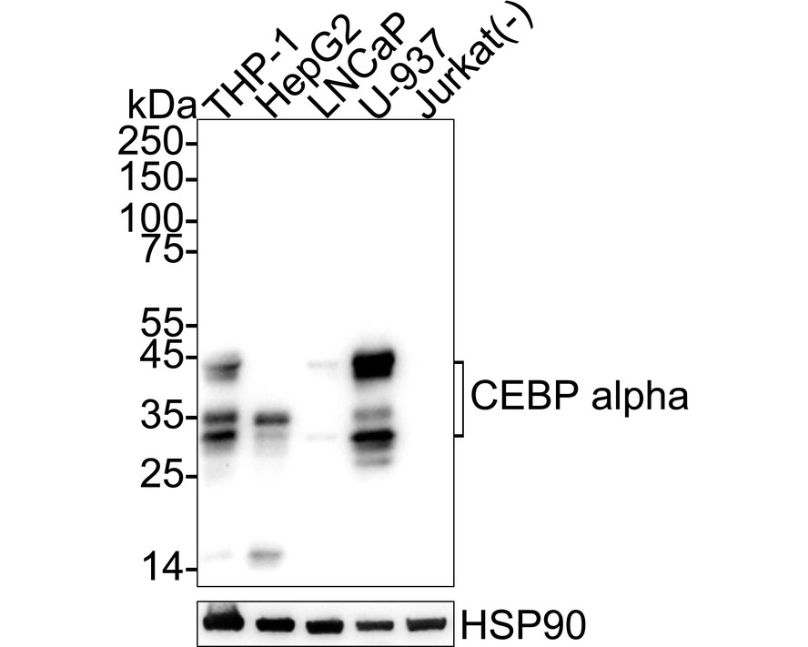 Western blot analysis of CEBP alpha on different lysates with Rabbit anti-CEBP alpha antibody (HA724154) at 1/5,000 dilution.