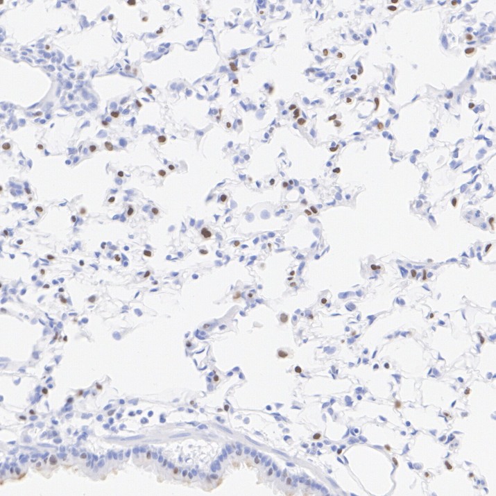 Immunohistochemical analysis of paraffin-embedded rat lung tissue with Rabbit anti-CEBP alpha antibody (HA724154) at 1/1,000 dilution.