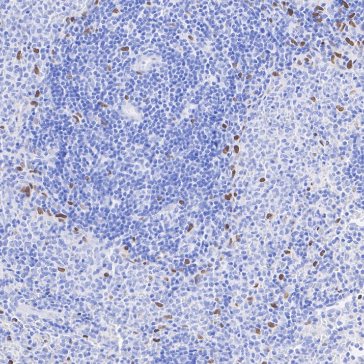 The section was pre-treated using heat mediated antigen retrieval with Tris-EDTA buffer (pH 9.0) for 20 minutes. The tissues were blocked in 1% BSA for 20 minutes at room temperature, washed with ddH2O and PBS, and then probed with the primary antibody (HA724154) at 1/1,000 dilution for 1 hour at room temperature. The detection was performed using an HRP conjugated compact polymer system. DAB was used as the chromogen. Tissues were counterstained with hematoxylin and mounted with DPX. -