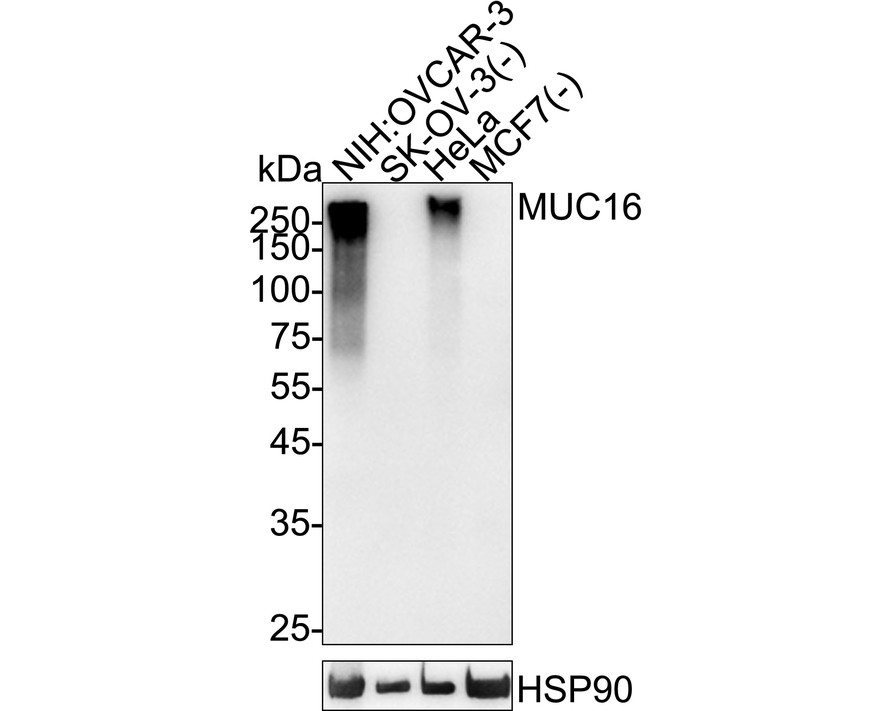 Western blot analysis of MUC16 on different lysates with Rabbit anti-MUC16 antibody (HA724248) at 1/5,000 dilution.
