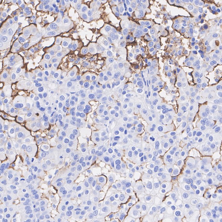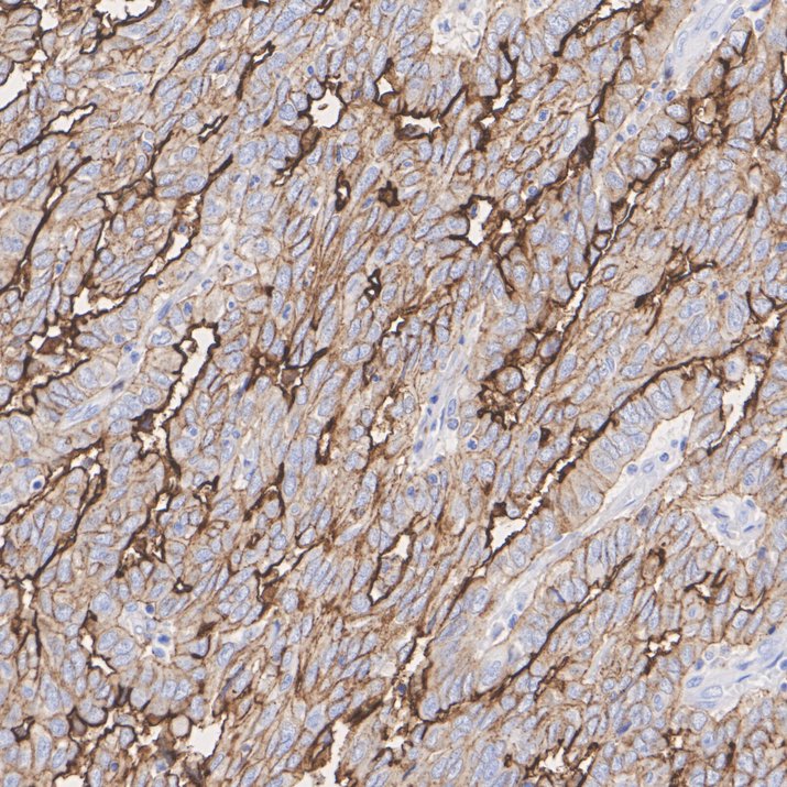 Immunohistochemical analysis of paraffin-embedded human hepatocellular carcinoma tissue with Rabbit anti-MUC16 antibody (HA724248) at 1/200 dilution.
