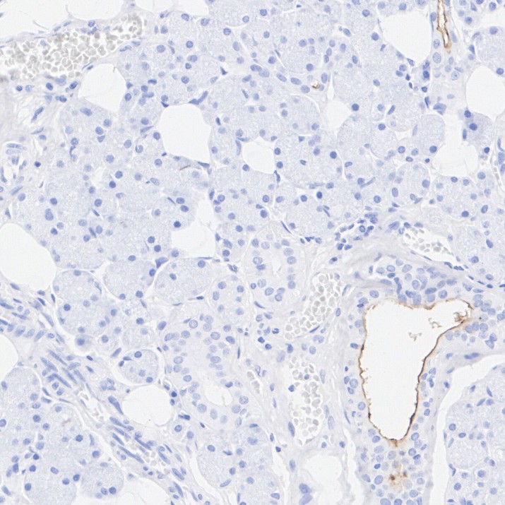 Immunohistochemical analysis of paraffin-embedded human salivary glands tissue with Rabbit anti-MUC16 antibody (HA724248) at 1/200 dilution.