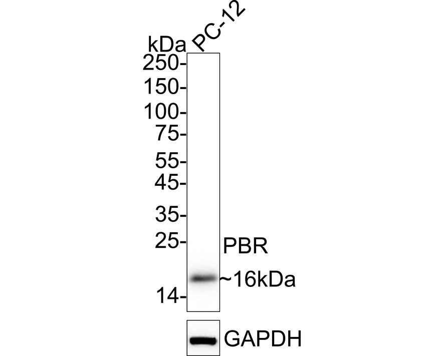 Western blot analysis of PBR on PC-12 cell lysates with Rabbit anti-PBR antibody (HA750010) at 1/2,000 dilution.