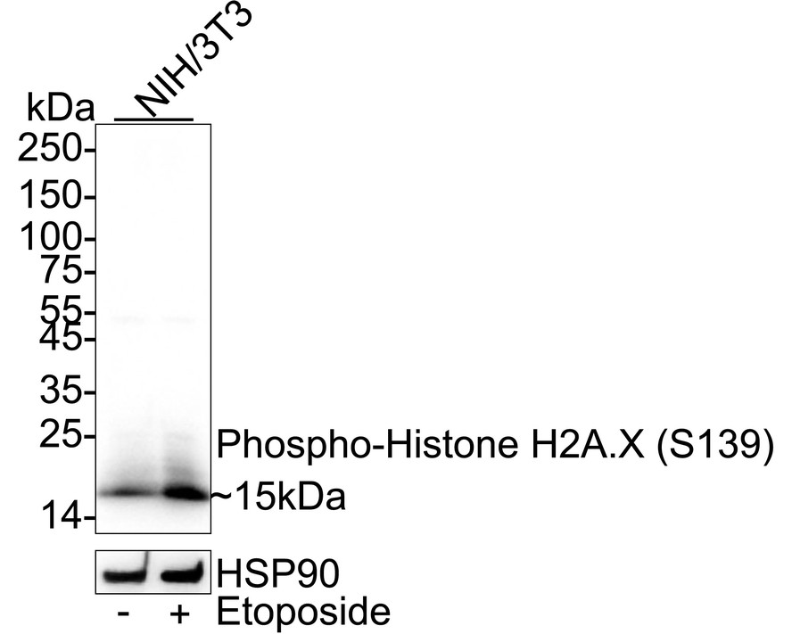 Lane 2: NIH/3T3 treated with 25μM Etoposide for 5 hours cell lysate (20 µg/Lane)