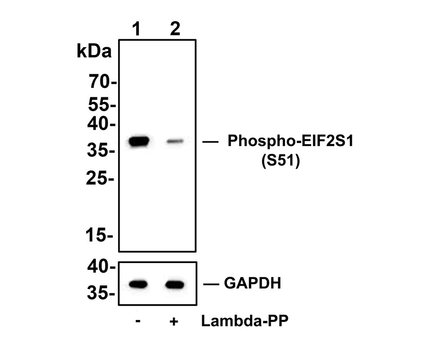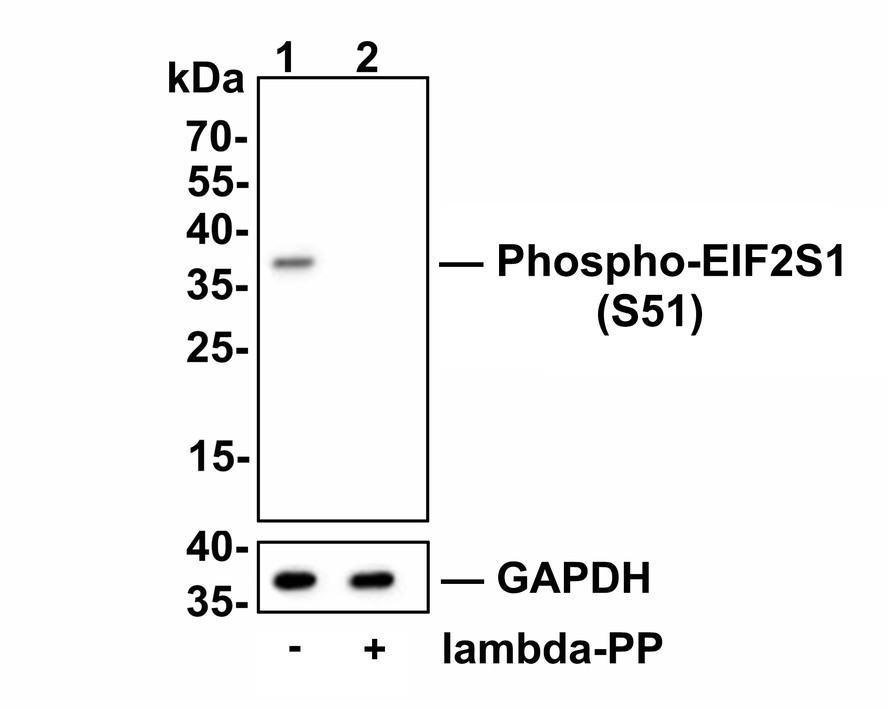 Western blot analysis of Phospho-EIF2S1 (S51) on different lysates with Rabbit anti-Phospho-EIF2S1 (S51) antibody (HA750059) at 1/2,000 dilution.
