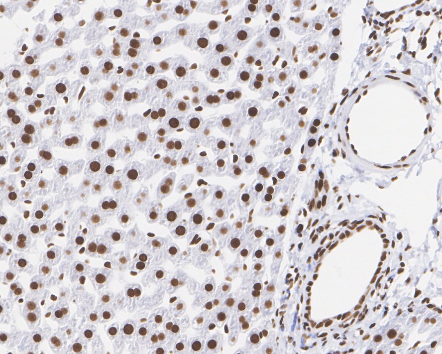 Immunohistochemical analysis of paraffin-embedded rat liver tissue with Rabbit anti-HDAC1 antibody (HA750083) at 1/1,000 dilution.