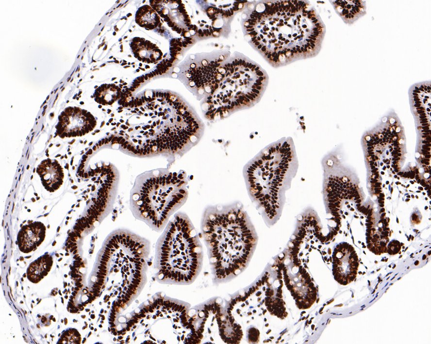 Immunohistochemical analysis of paraffin-embedded mouse colon tissue with Rabbit anti-HDAC1 antibody (HA750083) at 1/800 dilution.