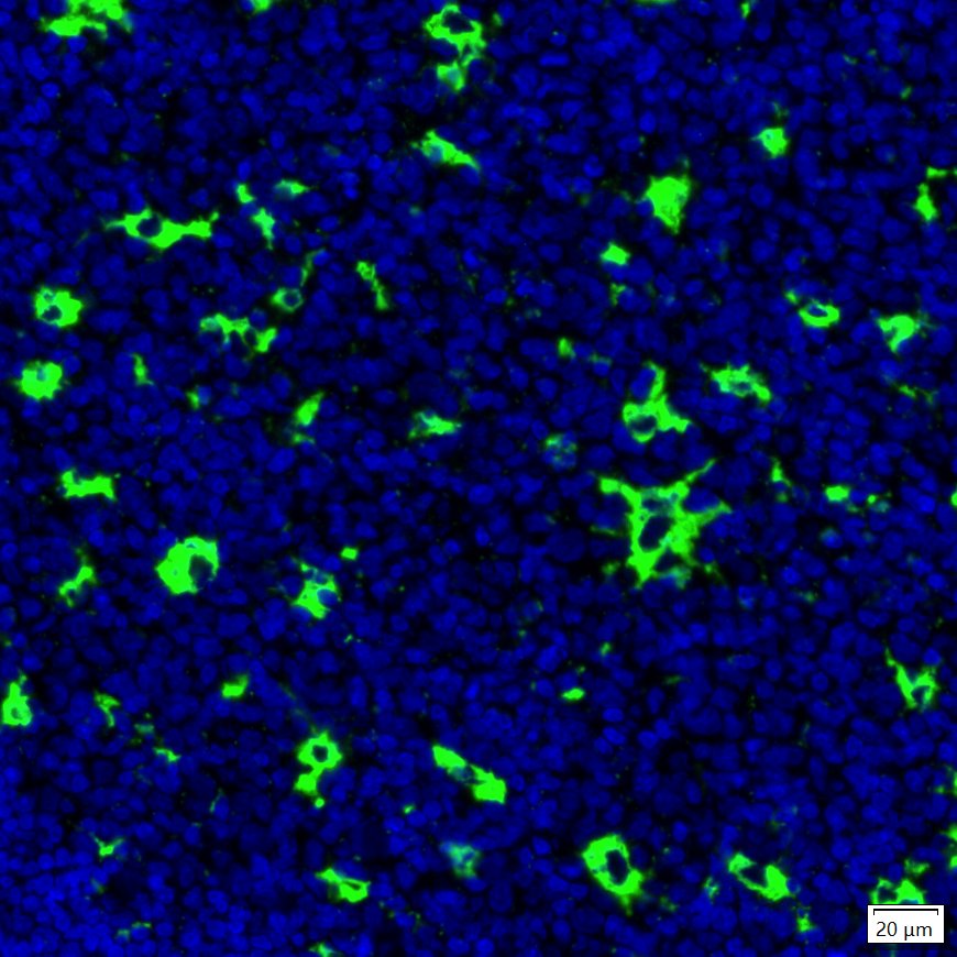 The section was pre-treated using heat mediated antigen retrieval with Tris-EDTA buffer (pH 9.0) for 20 minutes. The tissues were blocked in 1% BSA for 20 minutes at room temperature, washed with ddH2O and PBS, and then probed with the primary antibody (HA750152) at 1/3,000 dilution for 1 hour at room temperature. The detection was performed using an HRP conjugated compact polymer system. DAB was used as the chromogen. Tissues were counterstained with hematoxylin and mounted with DPX.