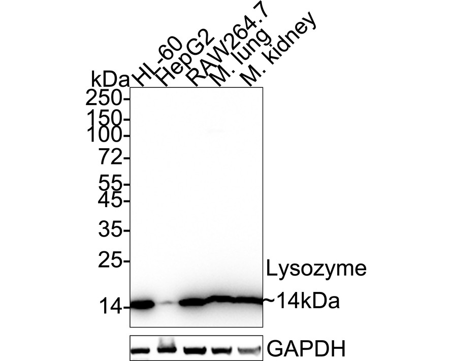 Western blot analysis of Lysozyme on different lysates with Rabbit anti-Lysozyme antibody (HA750170) at 1/2,000 dilution.