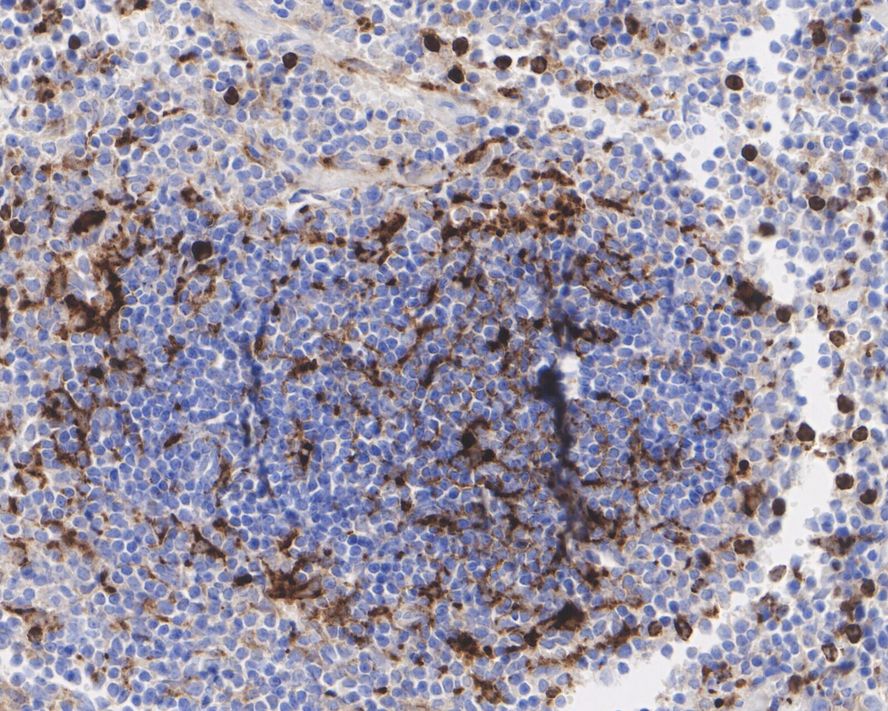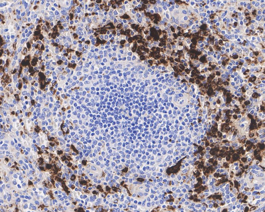 Immunohistochemical analysis of paraffin-embedded human spleen tissue with Rabbit anti-Lysozyme antibody (HA750170) at 1/500 dilution.