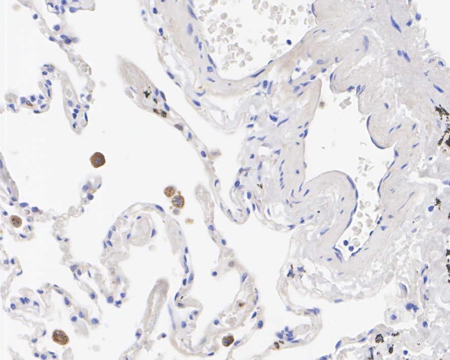 Immunohistochemical analysis of paraffin-embedded human lung tissue with Rabbit anti-Lysozyme antibody (HA750170) at 1/1,000 dilution.
