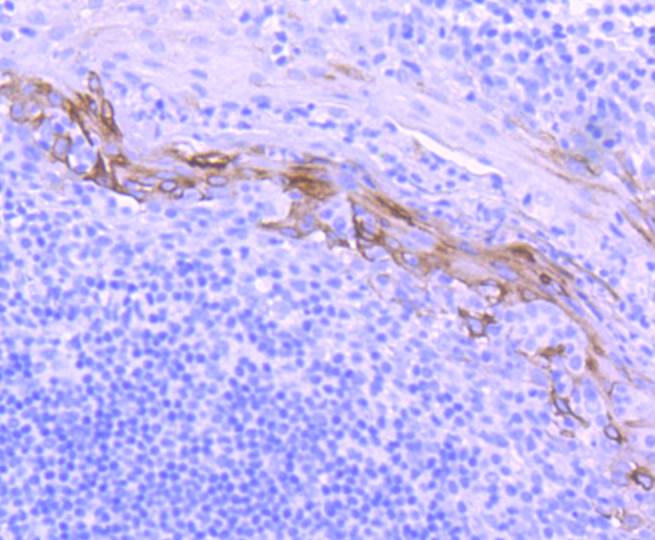 The section was not undergone antigen retrieval. The tissues were blocked in 1% BSA for 20 minutes at room temperature, washed with ddH2O and PBS, and then probed with the primary antibody (HA750193) at 1/1,500 dilution for 1 hour at room temperature. The detection was performed using an HRP conjugated compact polymer system. DAB was used as the chromogen. Tissues were counterstained with hematoxylin and mounted with DPX.