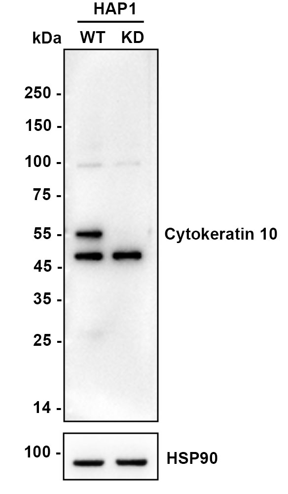 Lane 2: HAP1-Cytokeratin 10 KD cell lysate
