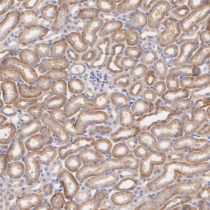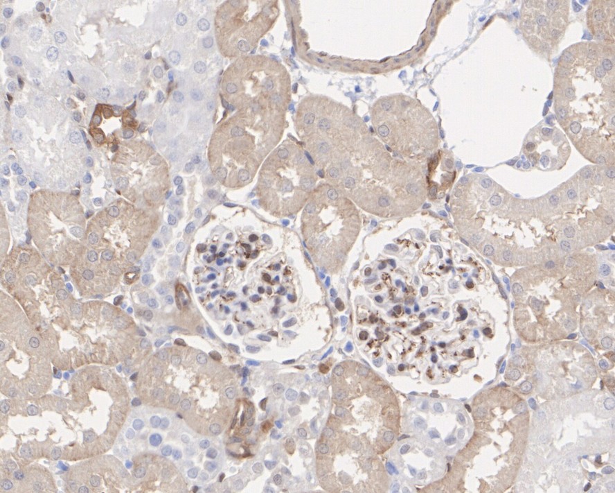 Immunohistochemical analysis of paraffin-embedded mouse kidney tissue with Rabbit anti-Phospho-YAP1 (S127) antibody (HA750269) at 1/5,000 dilution.