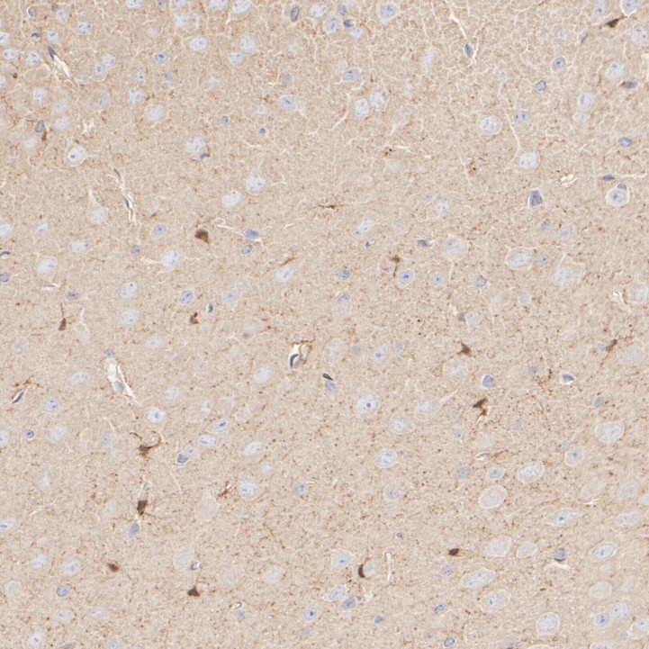 Immunohistochemical analysis of paraffin-embedded mouse brain tissue with Rabbit anti-PKC delta antibody (HA750325) at 1/200 dilution.