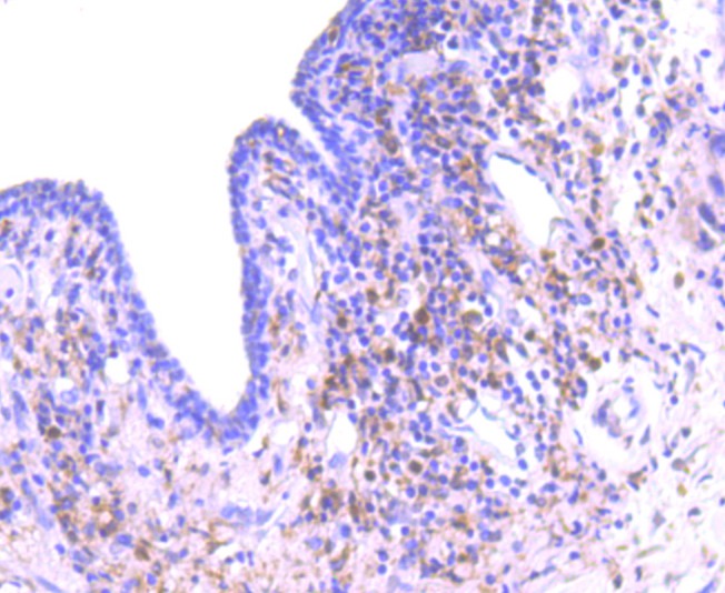 The section was pre-treated using heat mediated antigen retrieval with Tris-EDTA buffer (pH 9.0) for 20 minutes. The tissues were blocked in 1% BSA for 20 minutes at room temperature, washed with ddH2O and PBS, and then probed with the primary antibody (HA750325) at 1/200 dilution for 1 hour at room temperature. The detection was performed using an HRP conjugated compact polymer system. DAB was used as the chromogen. Tissues were counterstained with hematoxylin and mounted with DPX.