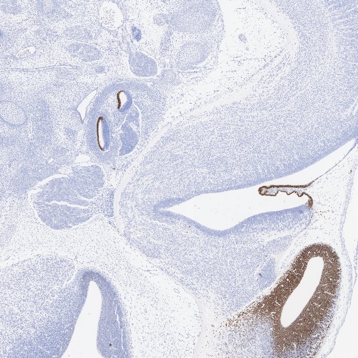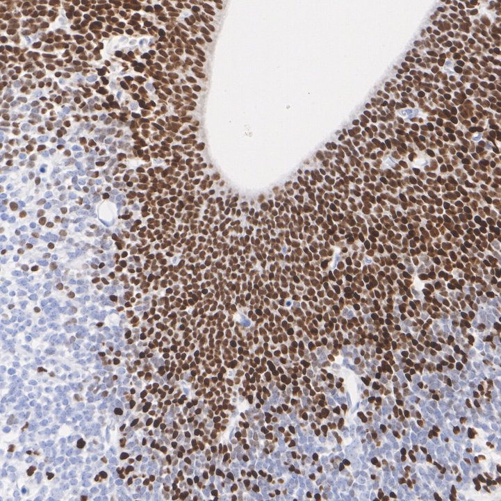 Immunohistochemical analysis of paraffin-embedded mouse embryo tissue with Rabbit anti-Otx2 antibody (HA750737) at 1/1,000 dilution.
