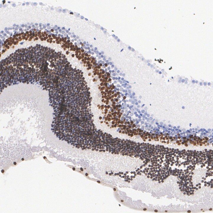 Immunohistochemical analysis of paraffin-embedded mouse eye tissue with Rabbit anti-Otx2 antibody (HA750737) at 1/1,000 dilution.
