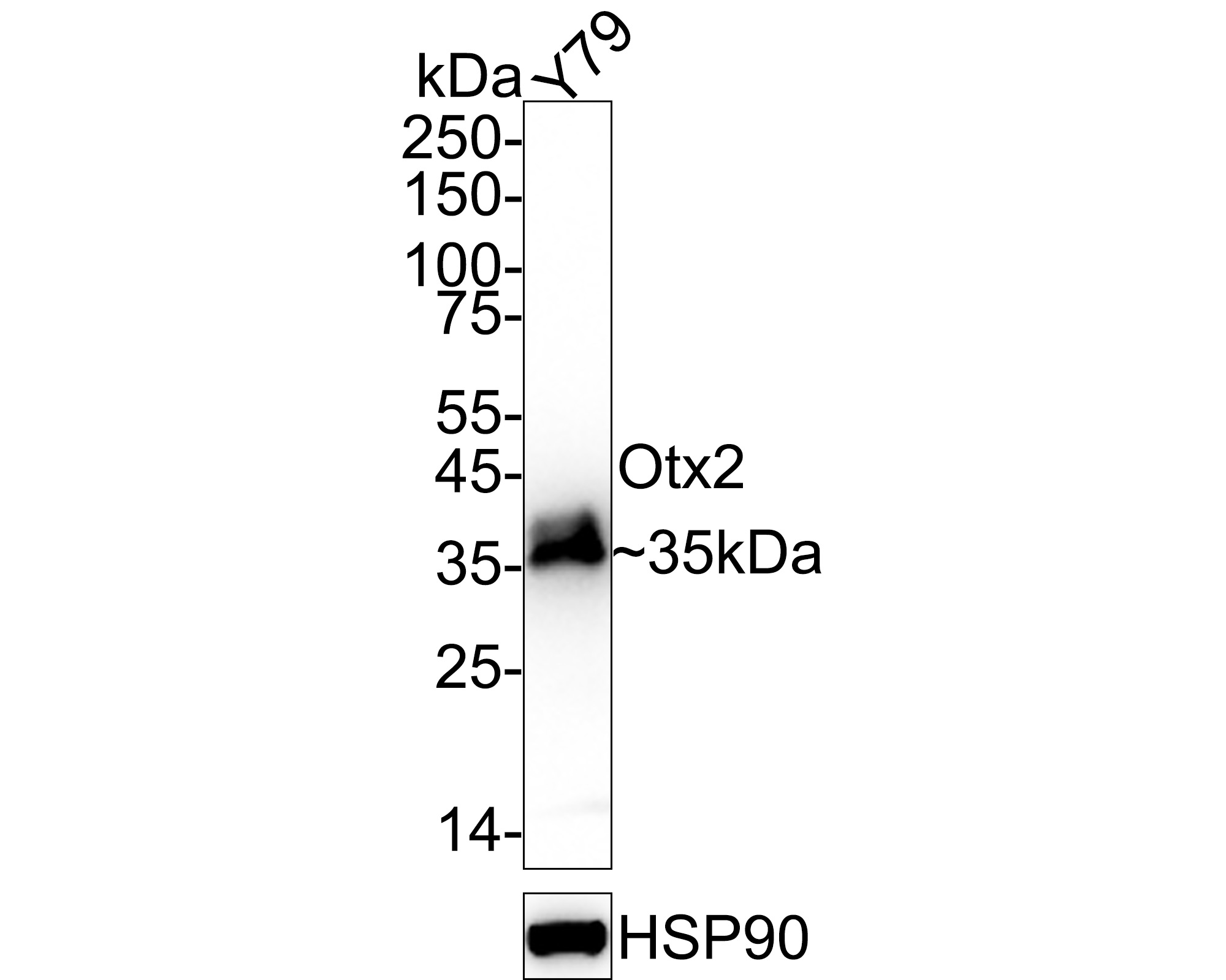 Western blot analysis of Otx2 on Y79 cell lysates with Rabbit anti-Otx2 antibody (HA750737) at 1/5,000 dilution.