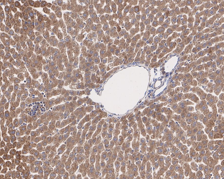 Immunohistochemical analysis of paraffin-embedded mouse liver tissue with Rabbit anti-TXNRD2 antibody (HA750794) at 1/200 dilution.