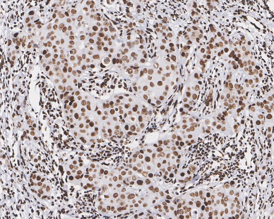 Immunohistochemical analysis of paraffin-embedded human breast carcinoma tissue with Rabbit anti-PML Protein antibody (HA750843) at 1/1,000 dilution.