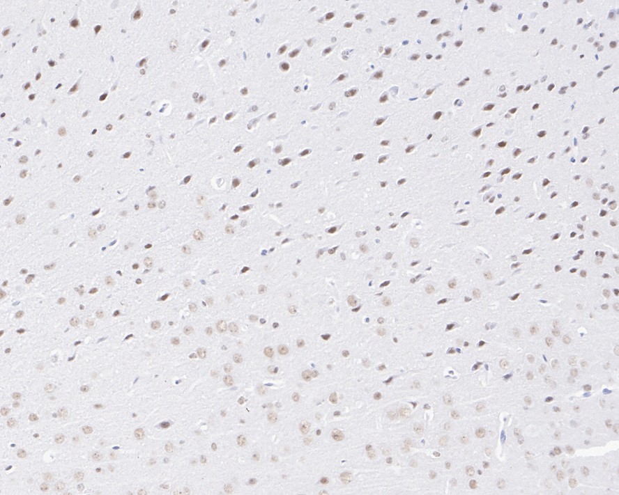 Immunohistochemical analysis of paraffin-embedded mouse brain tissue with Rabbit anti-KDM4A antibody (HA750901) at 1/1,000 dilution.