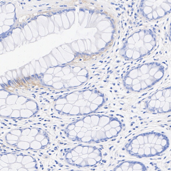 Immunohistochemical analysis of paraffin-embedded human rectum tissue with Rabbit anti-SLC16A3 / MCT 4 antibody (HA751115) at 1/1,000 dilution.