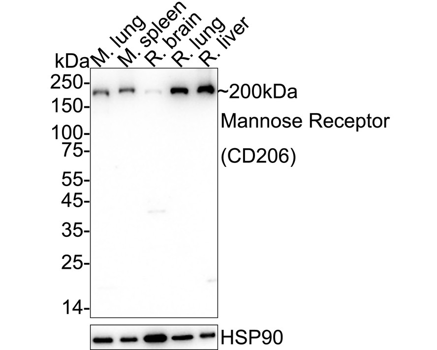 Western blot analysis of Mannose Receptor(CD206) on different lysates with Rabbit anti-Mannose Receptor(CD206) antibody (HA751188) at 1/1,000 dilution.