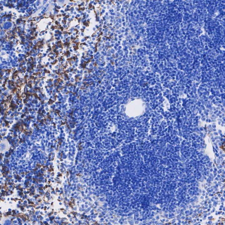 Immunohistochemical analysis of paraffin-embedded mouse spleen tissue with Rabbit anti-Mannose Receptor(CD206) antibody (HA751188) at 1/1,000 dilution.