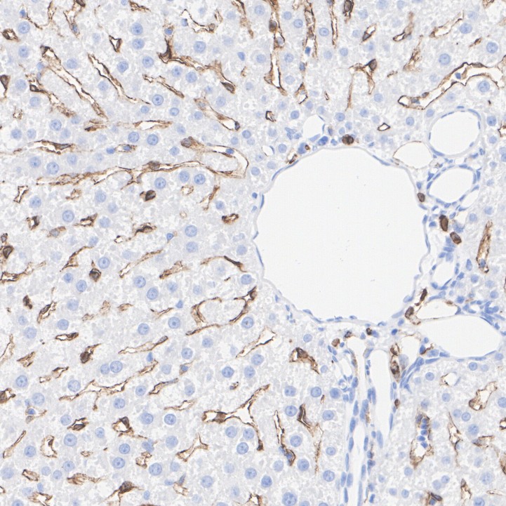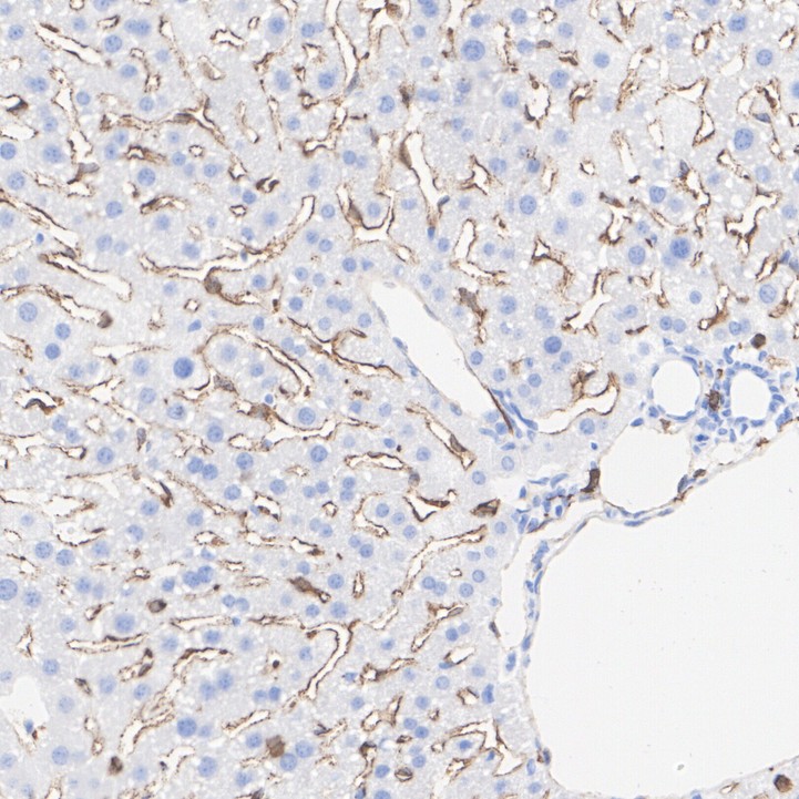Immunohistochemical analysis of paraffin-embedded mouse liver tissue with Rabbit anti-Mannose Receptor(CD206) antibody (HA751188) at 1/1,000 dilution.