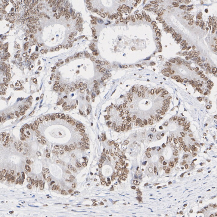 Immunohistochemical analysis of paraffin-embedded human colon cancer tissue with Rabbit anti-Acetylated-Lysine antibody (HA751269) at 1/20,000 dilution.