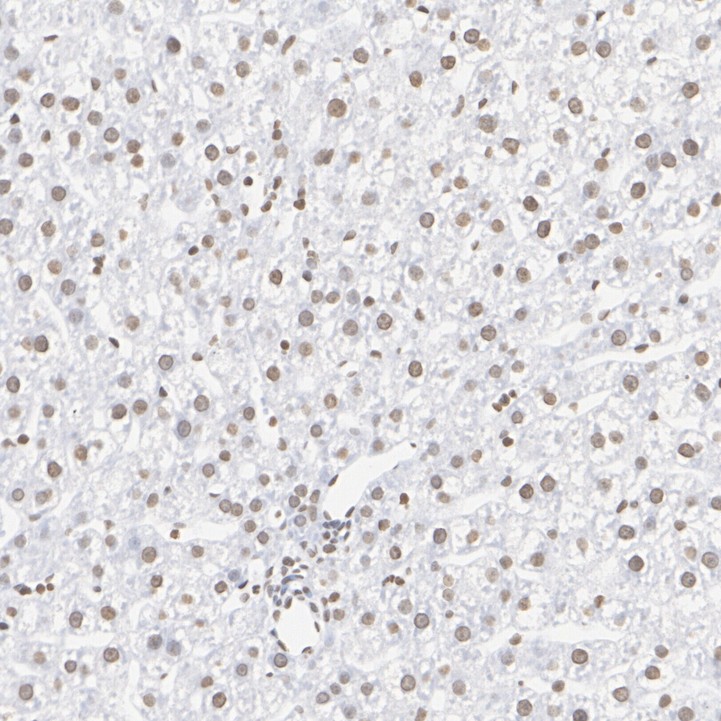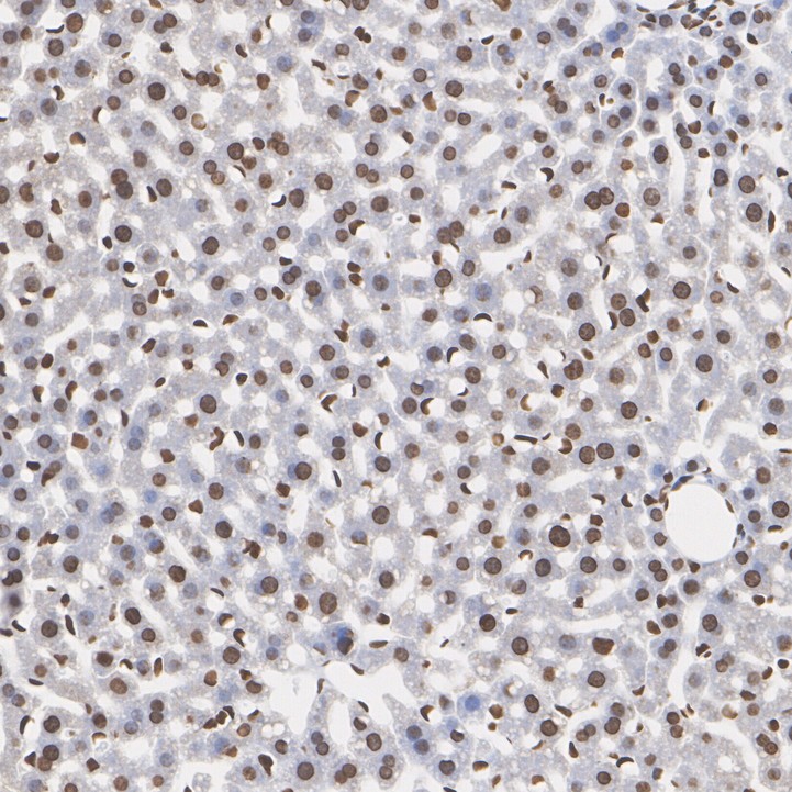 Immunohistochemical analysis of paraffin-embedded mouse liver tissue with Rabbit anti-Acetylated-Lysine antibody (HA751269) at 1/20,000 dilution.