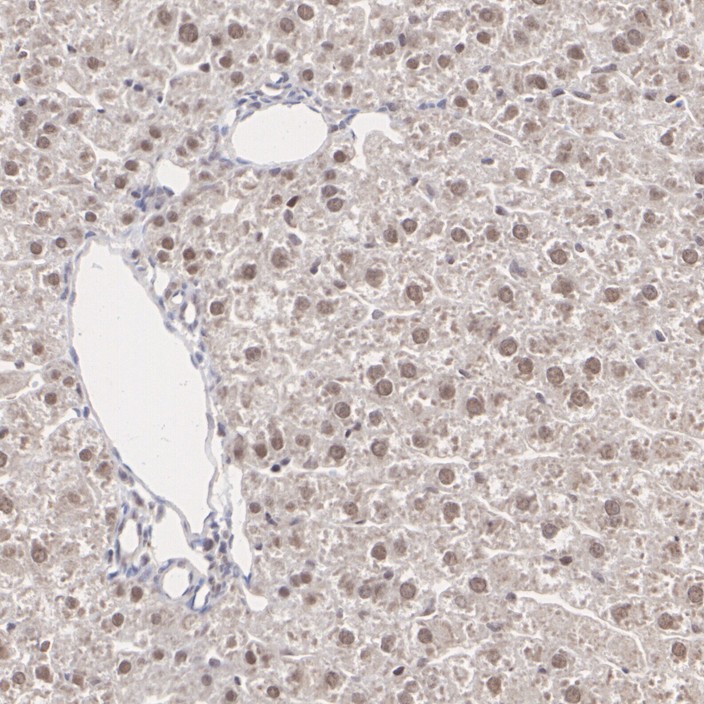 Immunohistochemical analysis of paraffin-embedded mouse liver tissue with Rabbit anti-Pin1 antibody (HA751373) at 1/200 dilution.