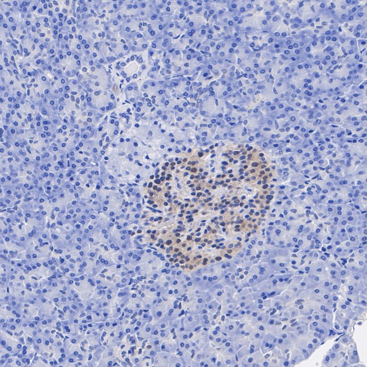 Immunohistochemical analysis of paraffin-embedded rat pancreas tissue with Rabbit anti-Pin1 antibody (HA751373) at 1/1,000 dilution.