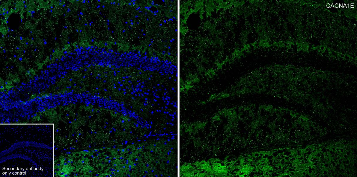 Immunohistochemical analysis of paraffin-embedded mouse hippocampus tissue with Rabbit anti-CaV2.3 / CACNA1E antibody (HA751470) at 1/6,000 dilution.
