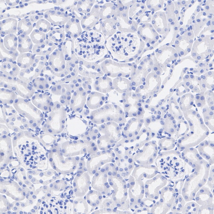 Immunohistochemical analysis of paraffin-embedded rat kidney tissue (negative) with Rabbit anti-CaV2.3 / CACNA1E antibody (HA751470) at 1/3,000 dilution.