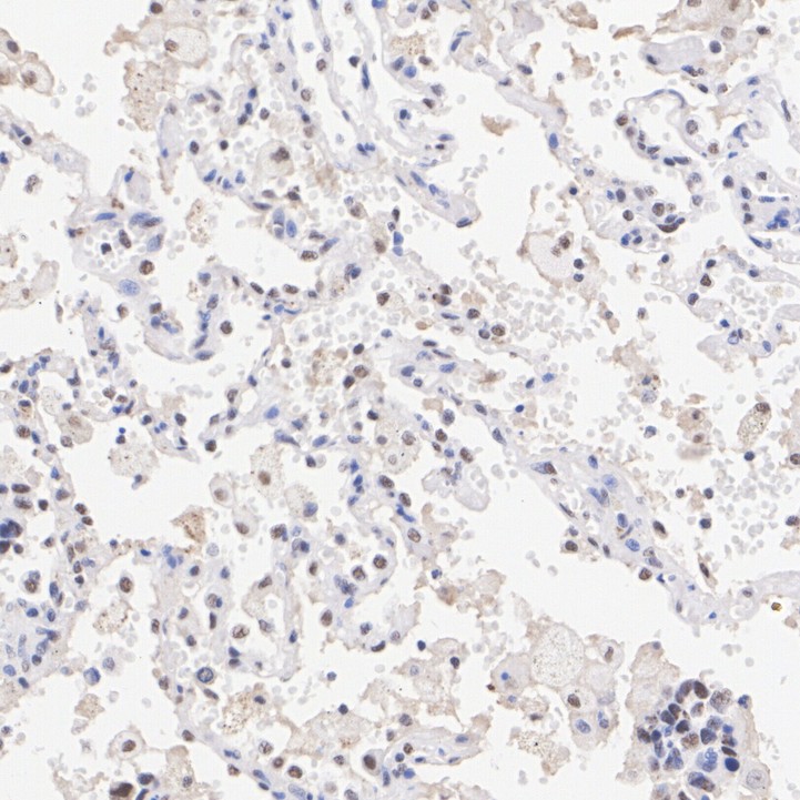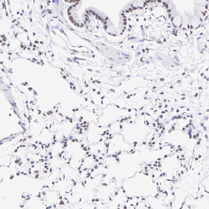 Immunohistochemical analysis of paraffin-embedded human lung tissue with Rabbit anti-Retinoid X Receptor beta / RXRB antibody (HA751472) at 1/200 dilution.