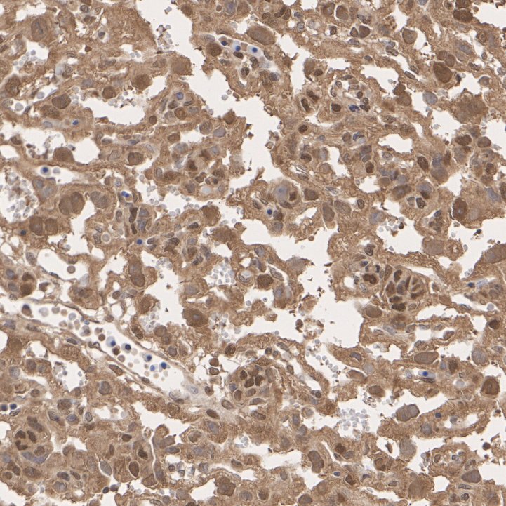 The section was pre-treated using heat mediated antigen retrieval with Tris-EDTA buffer (pH 9.0) for 20 minutes. The tissues were blocked in 1% BSA for 20 minutes at room temperature, washed with ddH2O and PBS, and then probed with the primary antibody (HA751520) at 1/1,000 dilution for 1 hour at room temperature. The detection was performed using an HRP conjugated compact polymer system. DAB was used as the chromogen. Tissues were counterstained with hematoxylin and mounted with DPX.
