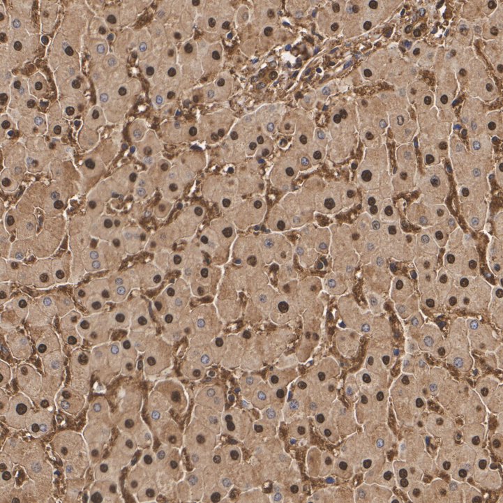 Immunohistochemical analysis of paraffin-embedded human liver tissue with Rabbit anti-Triosephosphate isomerase antibody (HA751520) at 1/1,000 dilution.
