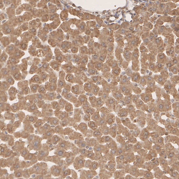 Immunohistochemical analysis of paraffin-embedded mouse liver tissue with Rabbit anti-Triosephosphate isomerase antibody (HA751520) at 1/1,000 dilution.