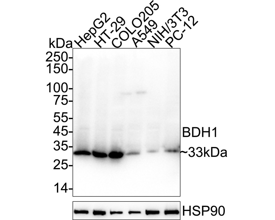 Western blot analysis of BDH1 on different lysates with Rabbit anti-BDH1 antibody (HA751532) at 1/5,000 dilution.